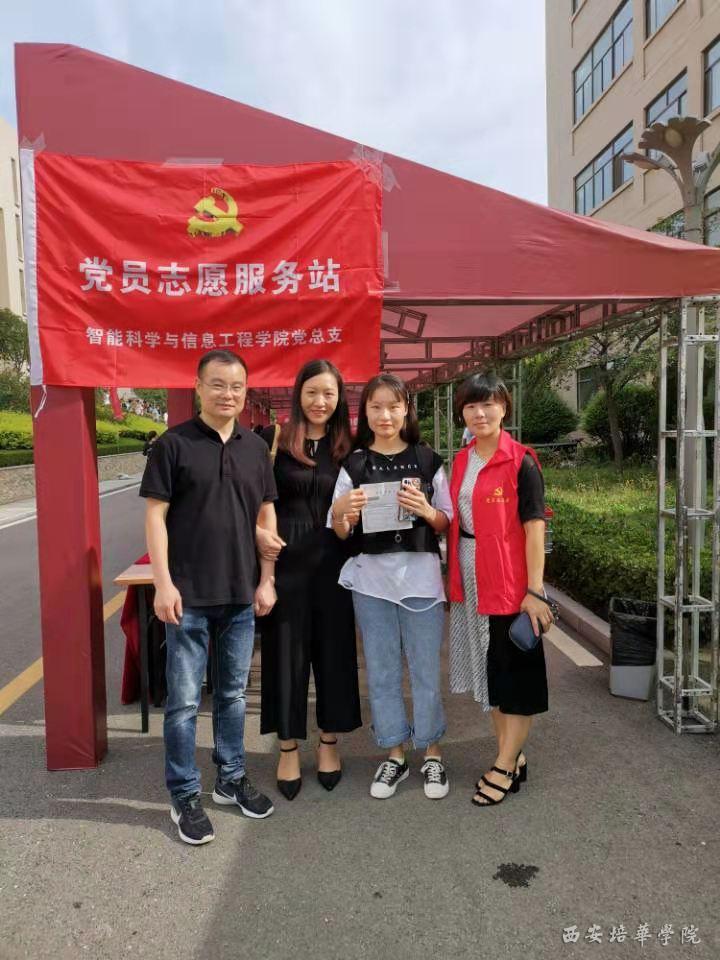 迎新工作如火如荼,到处都是忙碌的身影。党员们身穿鲜红的红色志愿者马甲,佩戴党徽,亮明党员身份,彰显党员风采。他们热情的迎接新生及家长,积极为入学新生及家长介绍校园环境,提供指路、引路、流程介绍、搬运行李等服务。党员们用一张张热情的笑脸、一句句亲切的问候、一项项贴心的服务欢迎来自祖国各地的莘莘学子们,让智能学子们充分感受到家一般的温暖与热情。新生腼腆地叫着“学长学姐”,家长们热情地道谢,大家的脸上都洋溢着笑容。