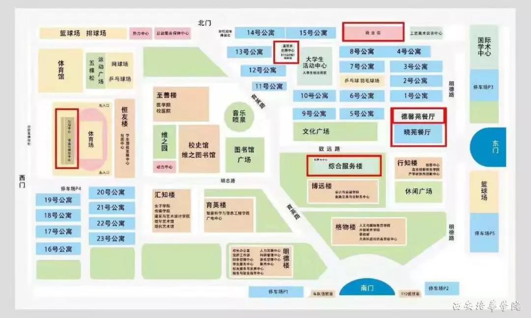 以下为西安培华学院详细地图,请记住图片中的汇知楼的所在位置!!!