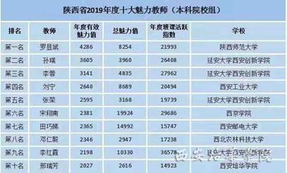 “陕西 省2019年度十大魅力教师(本科院校组)”排名如下: