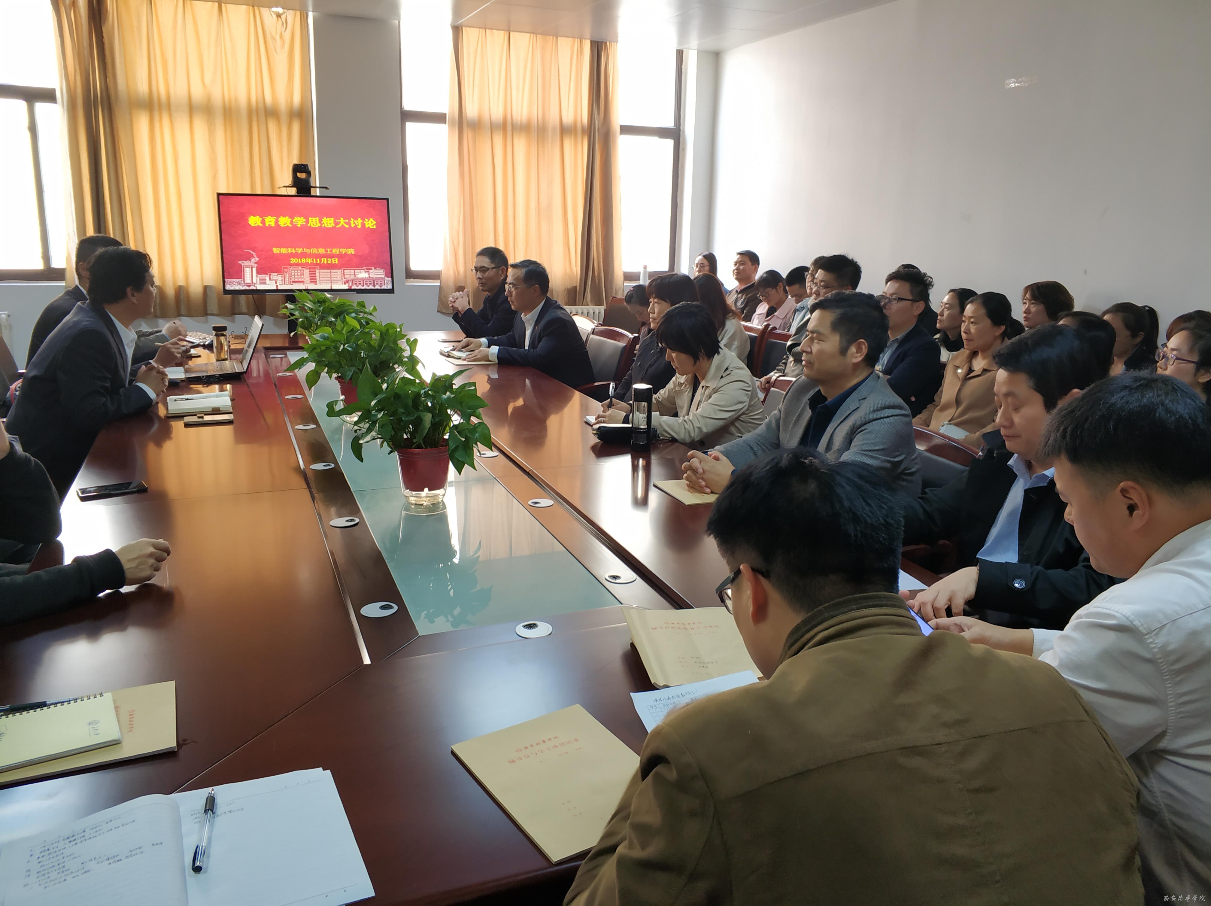 按照学校《关于印发的通知》和《关于印发的通知》,我院于11月2日在院会议室召开全体教职工大会,集中学习文件精神,全面动员和部署学校教育教学大讨论实施方案,并按照文件精神,在落实立德树人根本任务、深化应用型人才培养改革、加强校风教风学风建设、健全教育教学保障机制等四个根本任务方面进行了深入的学习交流讨论。