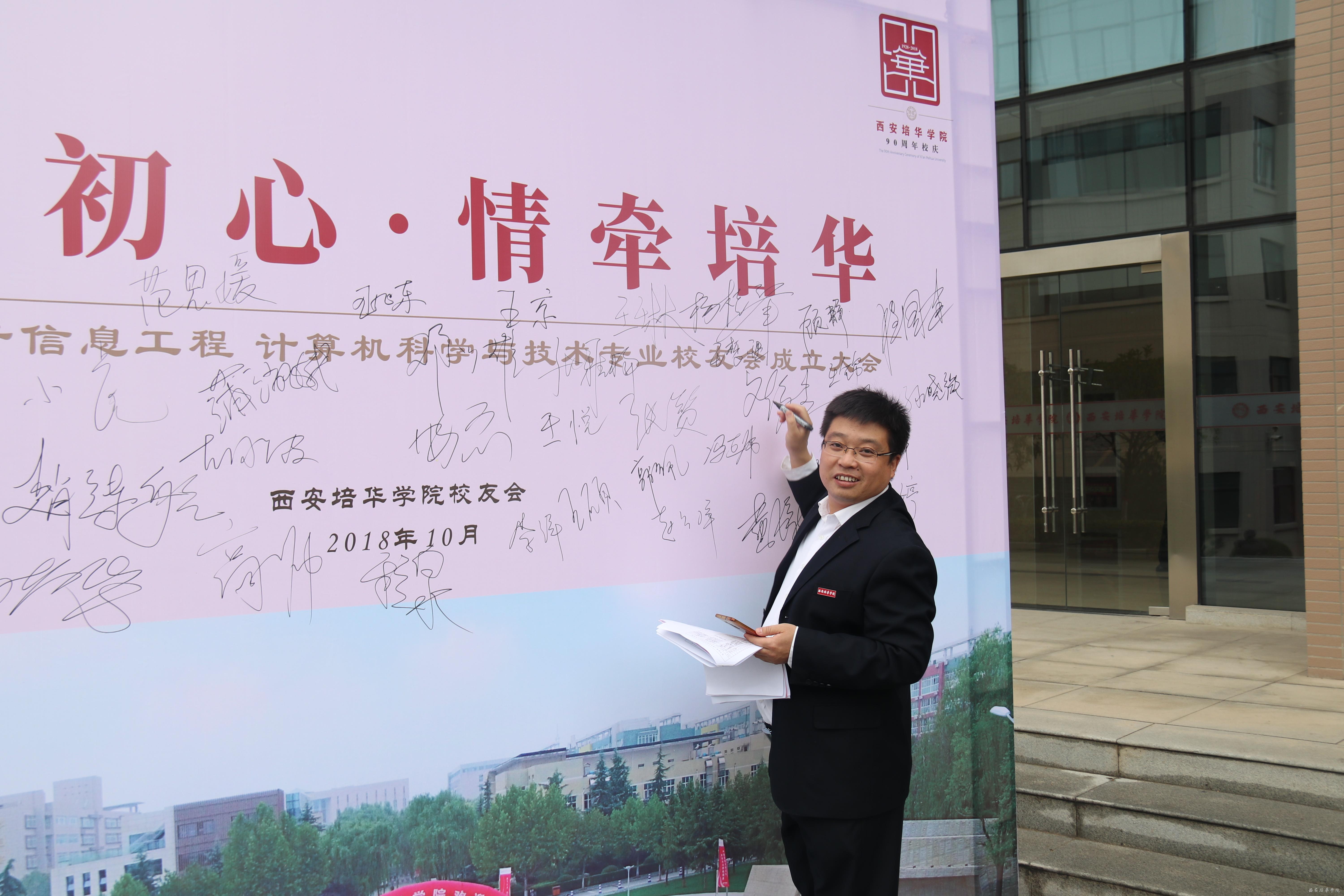 校友代表西安云火网络科技有限公司董事长张虎深情回忆了在培华四年的求学经历,培华深厚的人文情怀培养了他们为人朴实、基础扎实、工作务实、作风踏实的工作作风,使他们在各自工作岗位上得益于在培华所获得的丰厚的知识底蕴、坚强的自强自力精神和勇往直前的精神风貌。他说,母校是校友成长的摇篮和家园,校友是母校的名片和镜子,血脉相连,互为滋养,共生共荣。专业校友会的成立,圆了毕业离校培华人“家”的精神依托,搭建了一个母校、校友、社会沟通交流的纽带、成长发展的平台。校友在这里驻足相聚和交流,在这里追抚峥嵘岁月,展望美好明天。
