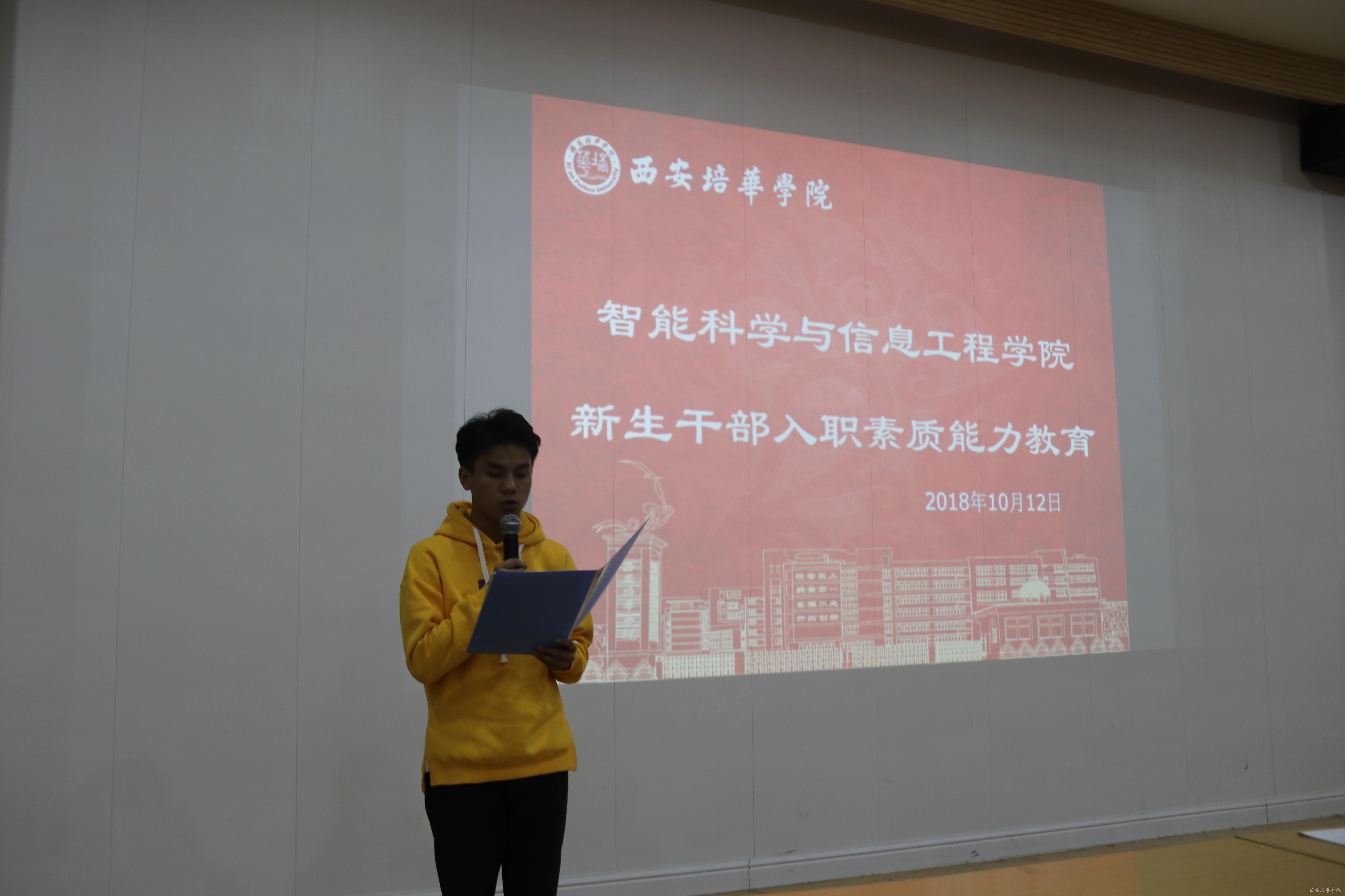2018年10月12日下午六点四十,智能科学与信息工程学院团委在博远楼J202教室召开了新生团学干部基本能力素质教育。智能科学与信息工程学院团委,学生会,以及青年志愿者协会参加本次会议。
