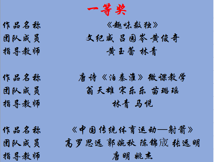 进入国赛的同学获奖情况