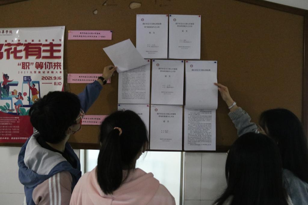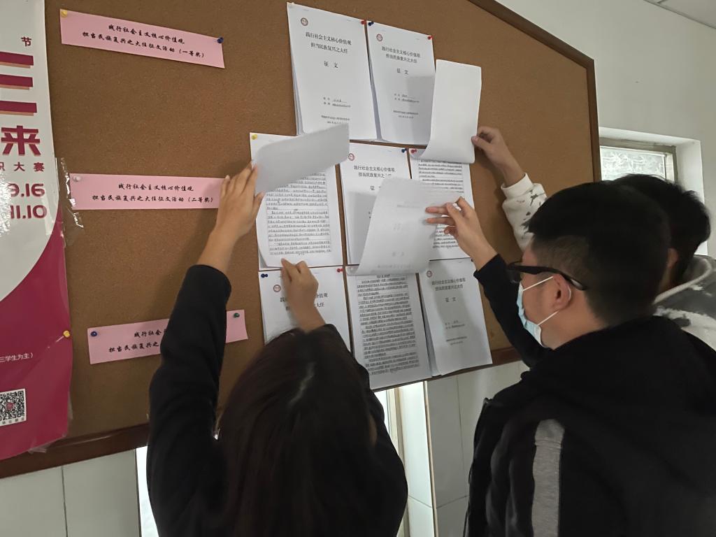 本次活动共收集63篇征文,学院党务工作部工作人员于10月25日晚在院党员活动室进行了评选,其间涌现出许多学生的优秀作品,他们用自己最真实的情感抒写着“践行社会主义核心价值观,担当民族复兴之大任祖国”的责任,抒发着为实现中华民族伟大复兴的中国梦的担当。