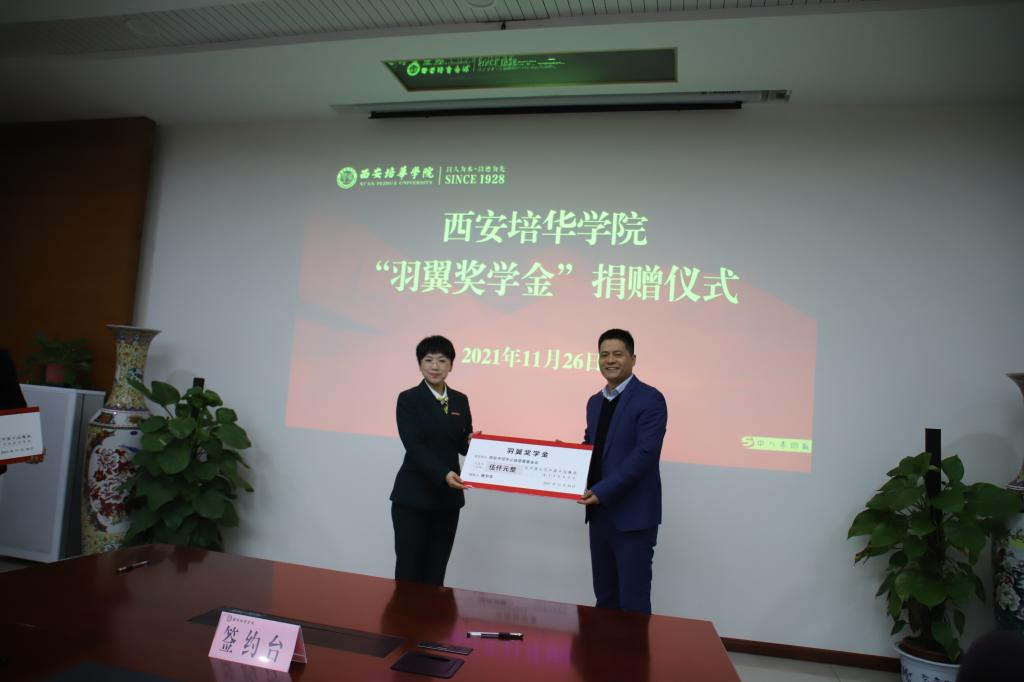 仪式上,西安培华学院理事长姜波对两位校友表示热烈欢迎,他表示,奖学金不在于多少,在于其沉甸甸的意义。一个拥有大爱的校友,让青年人满怀理想与抱负,在未来不仅能自食其力,并且能够造福身边的人,造福我们的国家。培华人在历史的长河上,前赴后继、乘风破浪、迎难而上,这是培华精神在校友身上的真实写照。