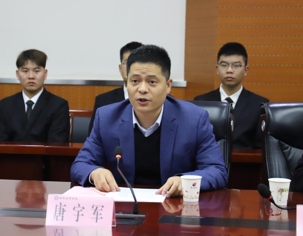 2008届电子信息工程专业校友唐宇军代表捐赠校友发言。他讲到,毕业这些年,时常想起在培华的日子,想起刚入学时候的校园环境,如今的母校各个方面都有了很大的发展。他表示,自己永远记得开学典礼上姜维之老校长的那句“今天我以培华为荣,明天培华以我为荣”。在工作的这些年中遇到了不少的培华校友,才渐渐发现原来培华学子早已桃李满天下,并取得了很好的成绩。培华学子已经在各行各业为祖国和社会的发展,贡献着自己的力量。