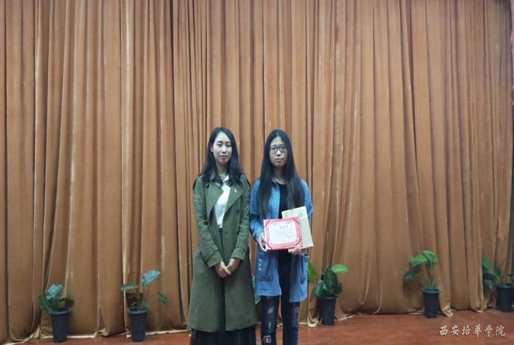 大会第二项,由党总支书记史立军和党务干事马悦老师为获奖学生颁奖。