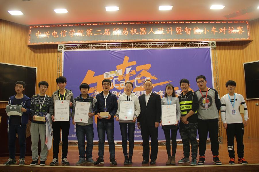 最终,由答凯艳老师带队,学生刘震、杨雪、吕咏品、冀祥组成的“对不队”队以团队积分第一名的身份独揽冠军宝座;由邢静老师带队,李康、任静怡、董娟娟、郭梦杰组成的Boom sha car la car队,由高方绮老师带队,范子龙、胡泰康、张彤、赖敏元、师帅、谢东组成的Megatron队,由张亚梅老师带队,郝胜利、李富洲、李皓、靳宇博、刘鹏、李宝能组成的H·icar队共获亚军;由殷娟娟老师带队,曹依梦、黄常、张敏静、董巷组成的SU7队,由安嘉黛老师带队,陈昕阳、雷浩哲、杨涛、侯磊波组成的T-π队,由王京老师带队,蔡李斌、唐源、李祥、吕叶、赵沛沛组成的Hello Car队,由黄玉蕾老师带队,张杰、卜文强、姚宇轩、艾旭凯组成的Caterpillar Team队共获季军。此外,Boom sha car la car队经过现场投票环节,以独特个性的智能小车外观设计,高票当选“最佳设计奖”;H·icar队的队员李富洲同学,以稳定的智能小车性能,获得全场个人积分最高分,荣获“最佳车神奖”。