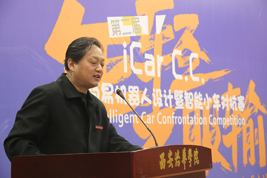 西安培华学院学生服务中心副主任徐莹、招生与就业指导中心主任鲍伟、新闻中心副主任柳雨、盘古创新创业学院教研室主任吴军政、中兴电信学院院长程国建、中兴电信学院党总支书记史立军、中兴电信实验教学中心主任陈实培、乐博士机器人(中国)赛事活动策划经理邱萌,以及中兴电信学院教师代表等出席开幕式。创客中心主任、中兴电信学院程国建院长首先致辞,肯定了同学们近月来在智能小车设计制作过程中付出的努力和收获,勉励同学们不断挑战自我,取得更好成绩,同时动员同学们积极参与形式多样的创新实践活动提升专业应用能力。