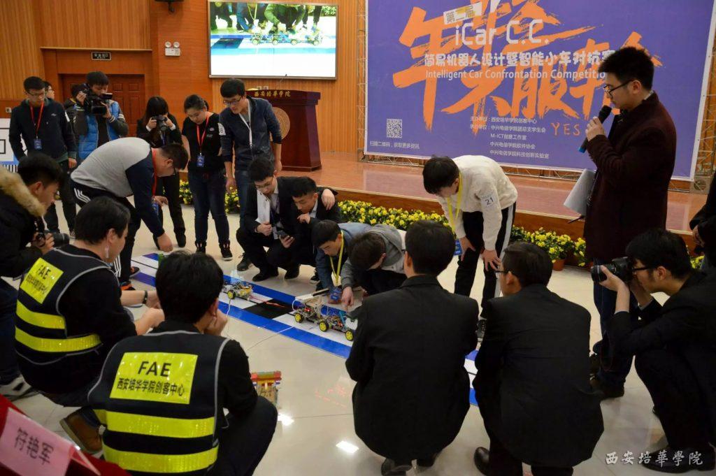 12月8日,由西安培华学院创客中心主办,中兴电信学院团总支学生会、M-ICT创意工作室、中兴电信学院软件协会、中兴电信学院科技创新实验室等单位联合举办的第二届iCar C.C.简易机器人设计暨智能小车对抗赛成功举行,共有8名带队教师及40余名学生参与了该项赛事。