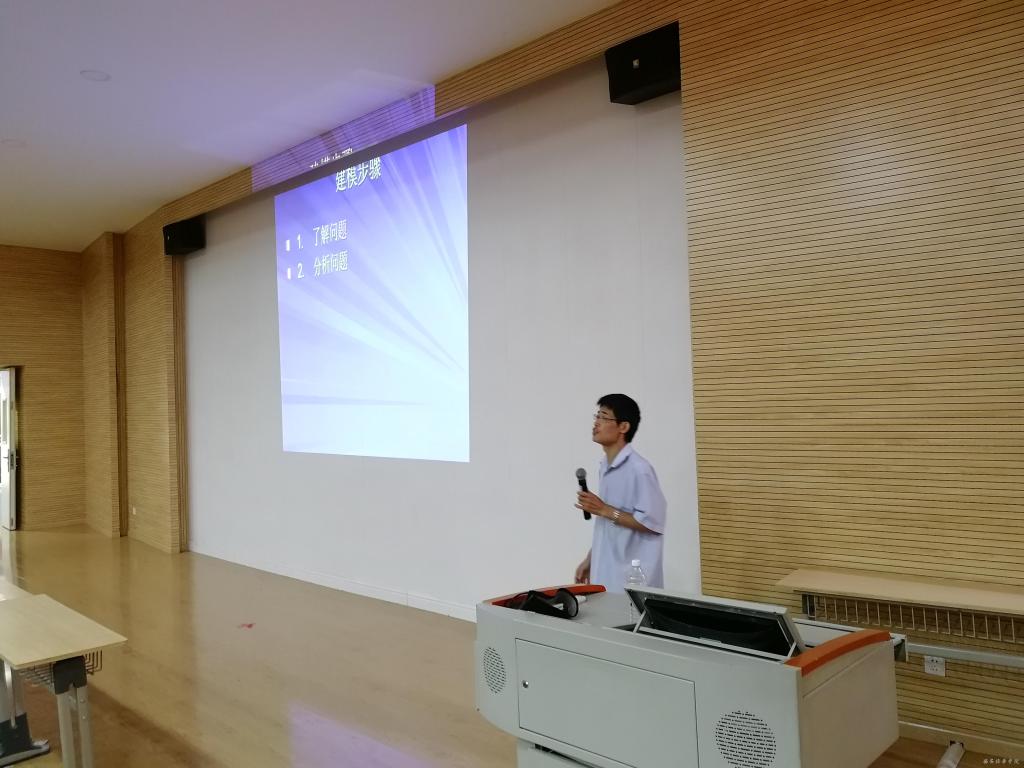 大会开始之际,肖老师直切主题,从什么是数学建模、建模的步骤、数学模型的分类以及如何培养数学建模能力四个方面向同学们作了具体介绍,使同学们对数学建模竞赛有了深刻的认识。
