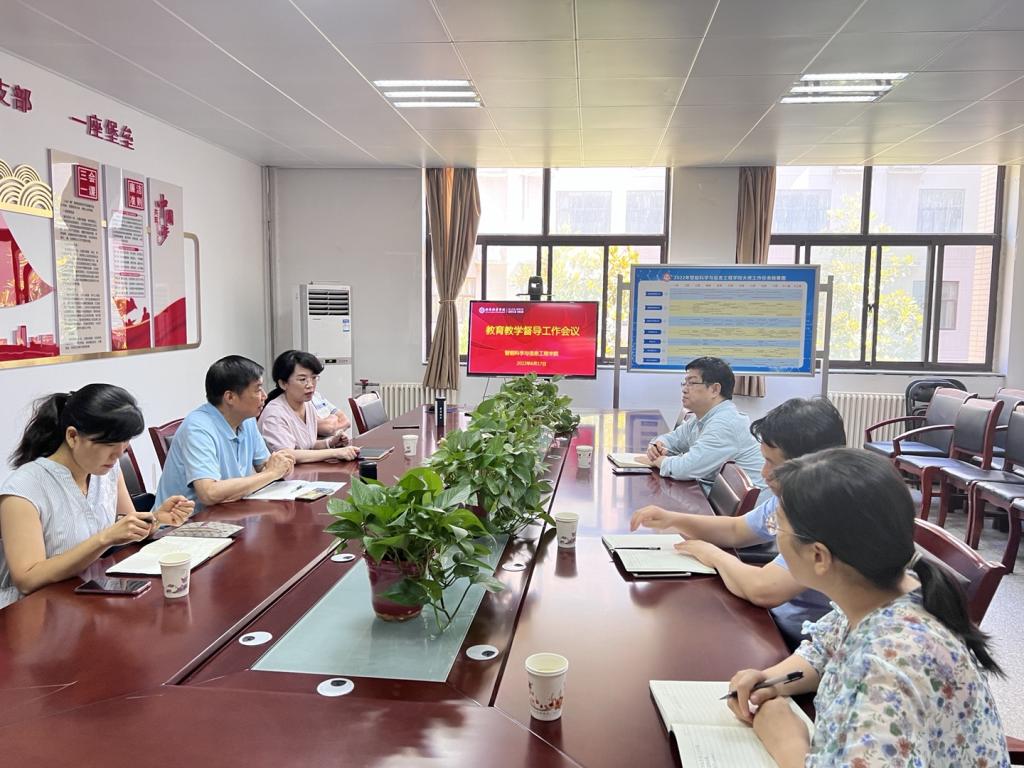 2022年6月17日上午,智能科学与信息工程学院2021-2022学年第二学期教育教学工作会议在学院会议室召开。校级督导张万绪教授、学院督导组组长成立院长、教学副院长田孝华、院长助理毛莉君、系主任、教学干事参加会议。会议由常务副院长成立主持。