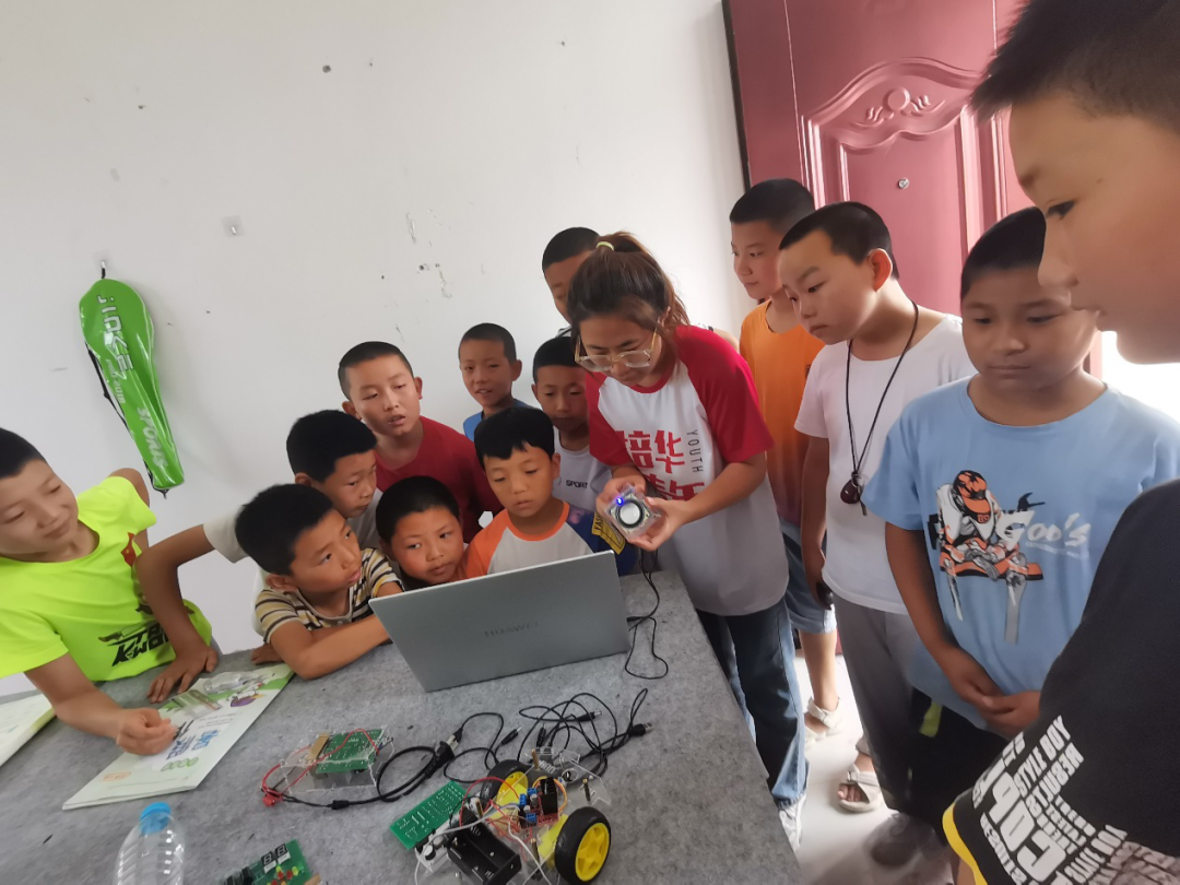 7月11日上午,志愿者利用专业学科知识为孩子们开展电子知识科普小课堂,其包括物联网时钟、智能小车、自制小音响等科技产品,吸引着孩子们的眼球,他们纷纷围上前来,脸上充满了疑惑,认真听志愿者讲解自制智能小车和充满神秘色彩的物联网时钟,通过自己动手、完成组装,小车在自己操控下动起来的那一瞬间,成功的喜悦溢满心灵;炫酷的物联网时钟,孩子们轻轻按下开关,屏幕上显示出带有多种颜色的网络同步时钟。