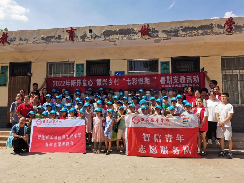 2022年7月9日,西安培华学院智能科学与信息工程学院智信青年志愿服务队的志愿者们抵达咸阳市永寿县马坊镇,在东张村、耿家村与咸阳蓝色志愿服务中心合作,共同开启为期15天的陪伴童心、振兴乡村、“七彩假期”志愿支教活动,为当地100余名留守儿童开展学业辅导、亲情陪伴、自护教育等志愿服务活动。