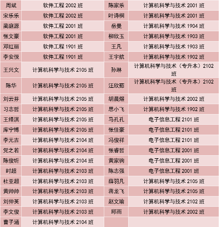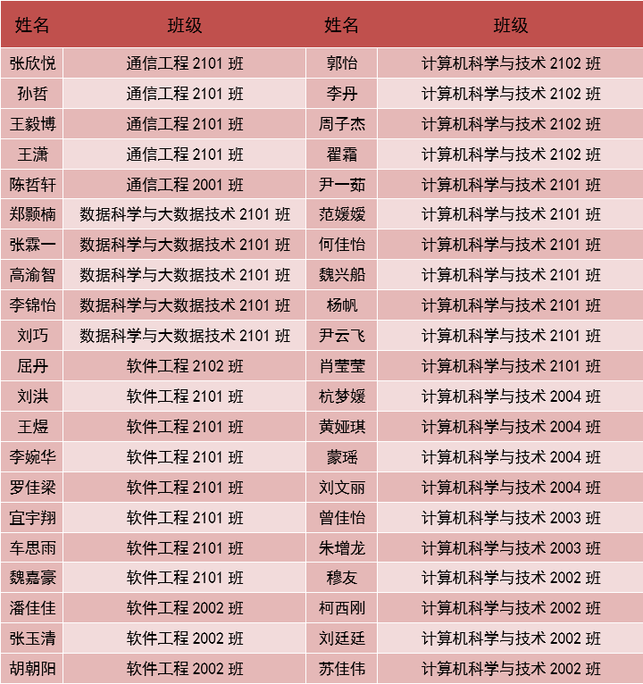 为此,共青团西安培华学院智能科学与信息工程学院委员会决定对本次开学迎新和疫情防控工作中表现突出的志愿者进行公开表彰。表彰名单如下: