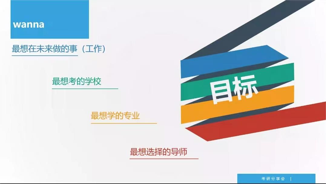 会议开始,杨老师介绍了本次考研分享会的目的是帮助同学们结合自身兴趣与发展方向选择读研专业和读研院校,以此来规划以后的人生道路,让同学们少走弯路,减轻考研的压力和负担,有助于同学们缓解紧张情绪、坚定考研信心、树立必胜信念。