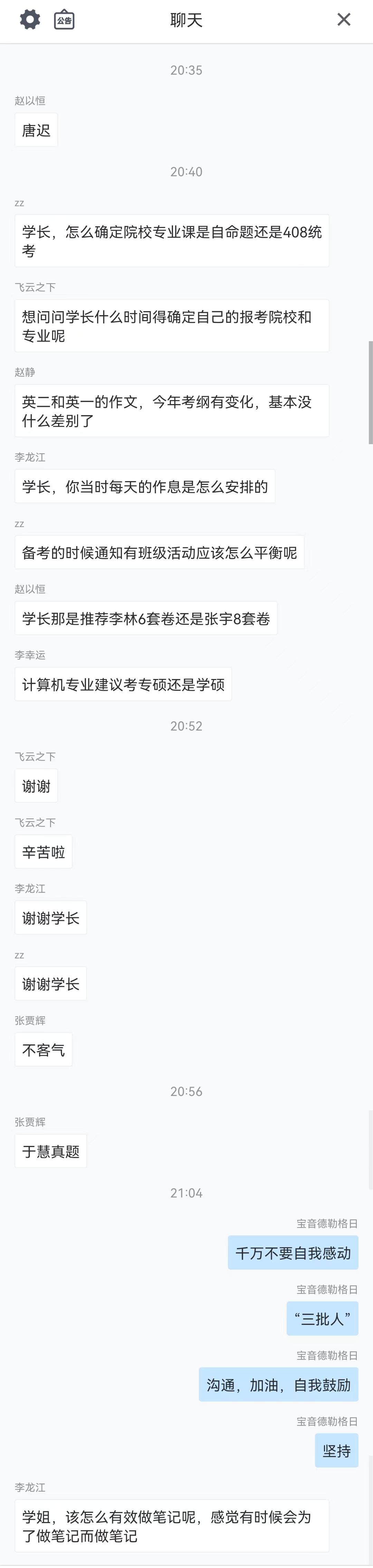 随后,2022级西安工业大学控制理论与控制工程专业研究生胡林捷学姐也分享了自己的考研经历。她将考研的准备分成了三个板块:精准定位、科学复习和保持心态,并分享了自己考研过程中的心路历程和心得体会。此外,她还认真解答了同学们关于考研中初试复试占比的疑问。