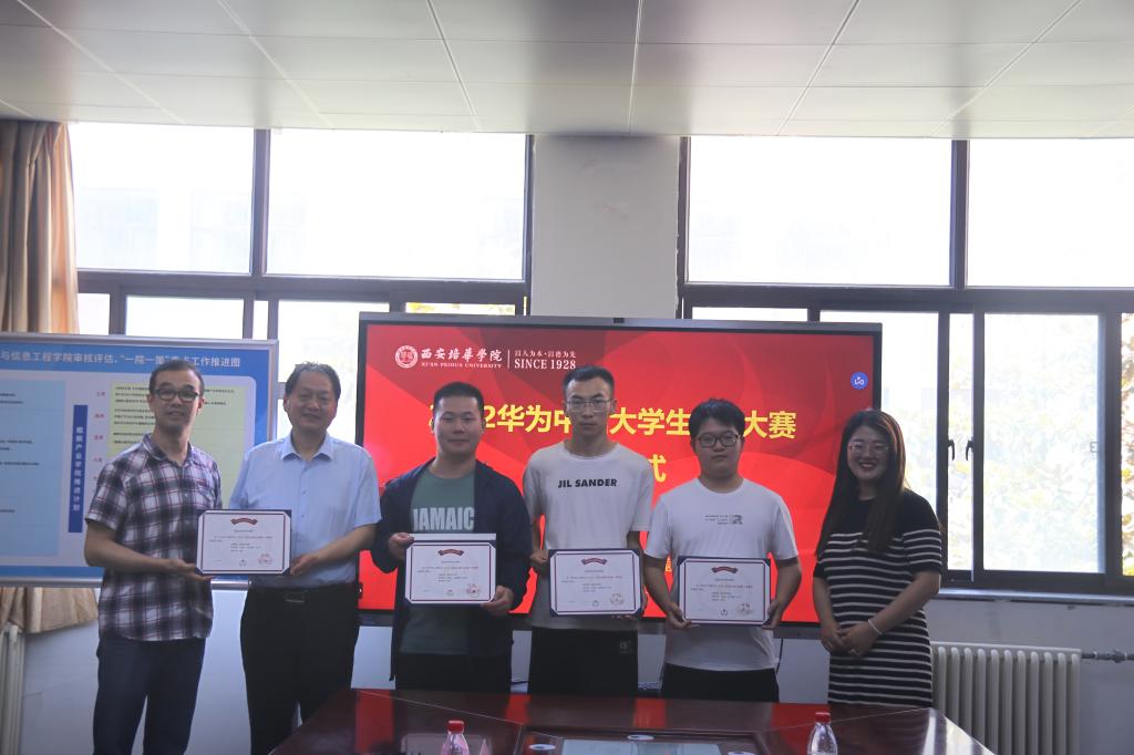 在学院领导的大力支持、精心组织,以及参赛选手的奋勇拼搏下,我校在本届华为ICT大赛实践赛计算赛道的比赛中,取得了突破性的成绩,最终获得陕西省一等奖1项,陕西省三等奖1项,全国三等奖1项。随后,毛莉君助理宣布获奖名单,并开始颁奖。