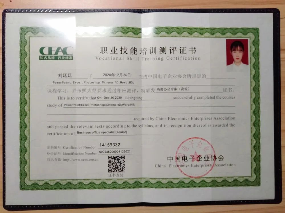 在学习上,她勤奋努力、踏实认真,学习成绩一直名列前茅,连续两年获得国家励志奖学金,荣获2021-2022学年自强之星奖学金,顺利通过大学英语四级考试并考取了CEAC商务办公专家(高级)证书,获评“三好学生”“优秀共青团员”等称号;同时积极参与各类竞赛,在中国大学生计算机设计大赛、高校微信小程序应用开发大赛、西安培华学院第三届中华诗词大赛均有获奖。