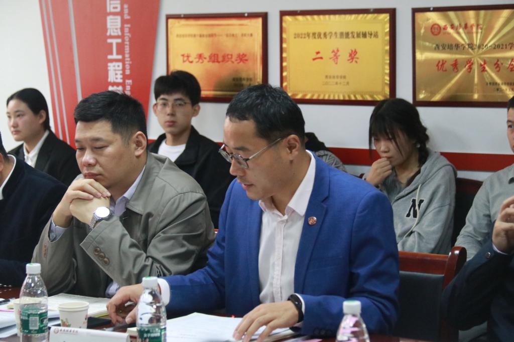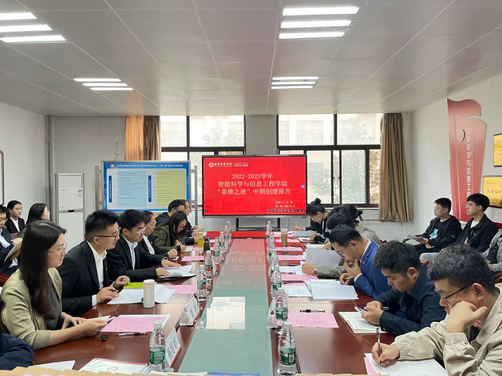 为进一步继承和弘扬维之精神,深化三全育人成效,筑牢智能科学与信息工程学院学风建设、班风建设,进一步加强我院“姜维之班”建设工作,根据学校“姜维之班”创建中期检查统一要求,我院于10月17日早上在学院党员会议室召开2022-2023学年“姜维之班”创建中期检查会。“姜维之班”中期检查组成员党委学工部部长蔡亮,副主任姚斌、权勇太,校团委书记杨媛,学生服务中心相关负责老师以及各学院辅导员代表一行莅临我院走访调研。我院党总支书记兼行政副院长王林、党总支副书记王伟平、学业导师代表、“姜维之班”创建班学生代表以及全体辅导员参加会议。会议由党总支书记兼行政副院长王林主持。