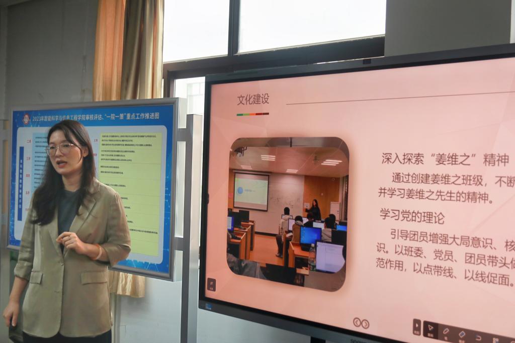 杨媛书记指出,通过社会实践、志愿服务、榜样力量、学子风采等资料汇编,从不同维度、不同侧面展现了班级姜维之班建设成果。
