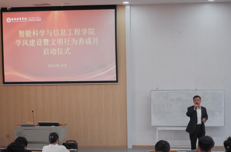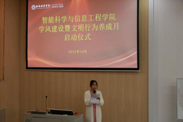 为深入学习宣传贯彻习近平新时代中国特色社会主义思想和党的二十大精神,全面落实习近平总书记关于弘扬科学家精神,加强作风学风建设工作重要指示精神,进一步落实和推动科学创新雨学风建设融合发展。我院积极响应学校号召,引领广大学子弘扬“严谨、勤奋、求实、创新”的优良学风,切实加强学生学风建设,积极营造良好学习和舆论氛围,2023年10月进行学风建设暨文明养成月的启动仪式,参与本次启动仪式的人员有院党总支副书记王伟平书记,学生干事杨桂锋老师、高珊珊老师,辅导员代表范静毅老师、张美娟老师、康乃馨老师。