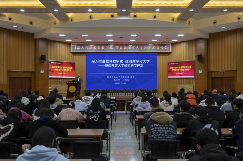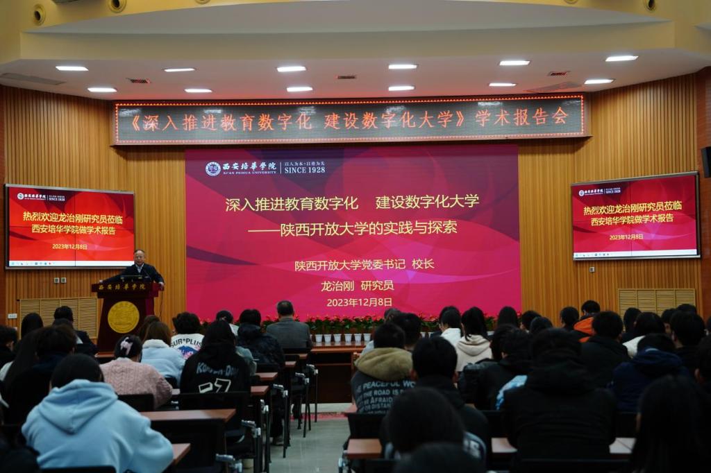 党的二十大强调“要坚持教育优先发展、科技自立自强、人才引领驱动,加快建设教育强国、科技强国、人才强国”,把教育、科技、人才的重要性摆在了突出位置。为把握新一轮科技革命和产业变革深入发展的机遇,深刻认识教育数字化的重要意义,深入研究教育数字化的方法路径,助力教育大国向教育强国跨越,为学习型社会、学习型大国建设提供有力支撑,我校邀请陕西开放大学、陕西工商职业学院党委书记、校长龙治刚做《深入推进教育数字化,建设数字化大学》学术报告会。