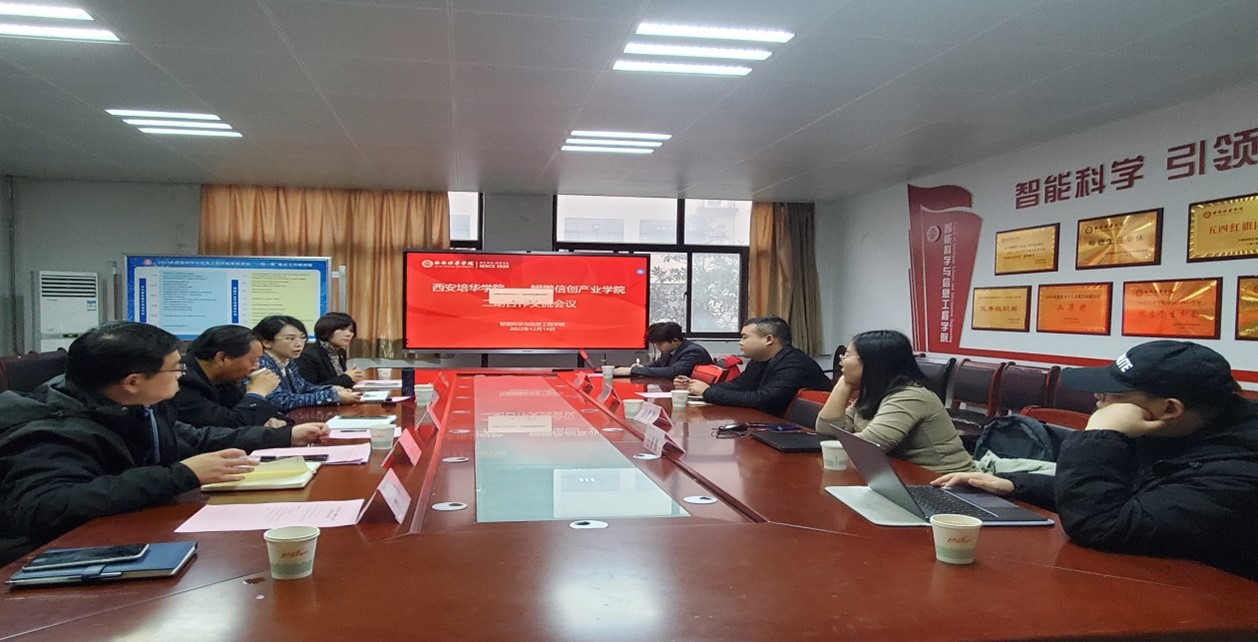 12月14日,在学院会议室召开了西安培华学院——智信鲲鹏产业学院二期建设合作交流研究会。深圳市讯方技术股份有限公司北部片区总经理(线上)杜红奎、陕西教育事业部总经理王姗姗、陕西高校项目部客户经理李浩、北部片区售前产品经理周毅等企业代表、西安培华学院教务管理中心副主任刘斌及智能科学与信息工程学院领导班子成员出席会议。会议由智能科学与信息工程学院院长助理毛莉君主持。