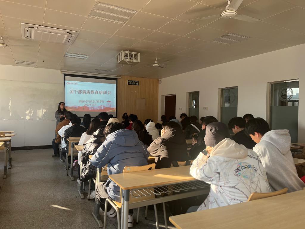 德智体美劳相辅相成,是立德树人培养高层次人才的重要一环。为了增强团干部之间的了解和友谊,培养学生干部团结协作,不畏艰难,勇于奉献等团队精神,团委书记魏晓妍老师做团干部素质教育培训,促进学生全面发展,扎实做好安全工作,全力推动平安校园建设,以立德树人为根本,打造“五育并举”活力校园,不断创新德育活动载体和育人平台。