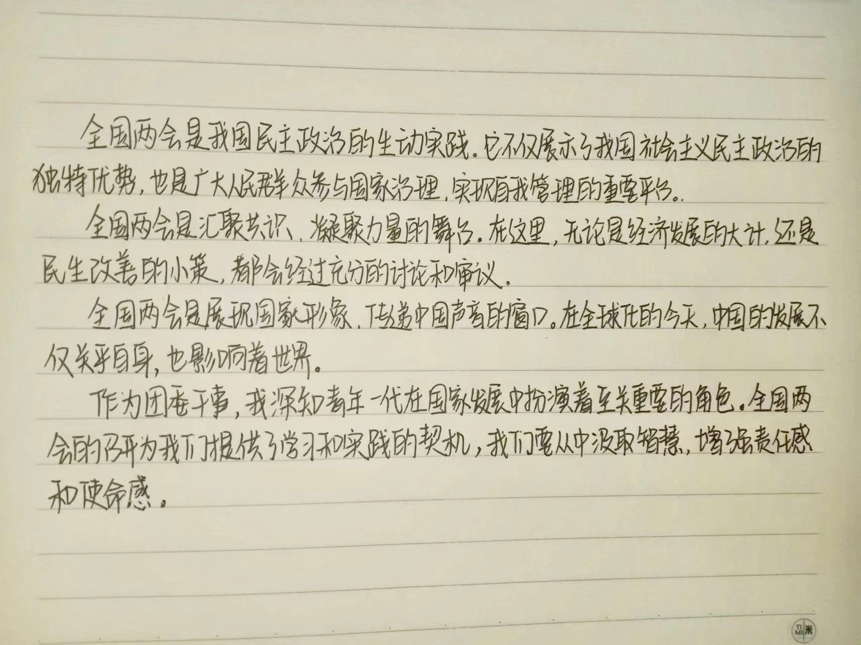 作为一名团委干事,我深感全国两会的重要性和意义。这次两会是中国政治生活中的重要事件,是代表们为国家发展建言、为人民福祉发声的平台。以下是我对这次两会的感悟:
