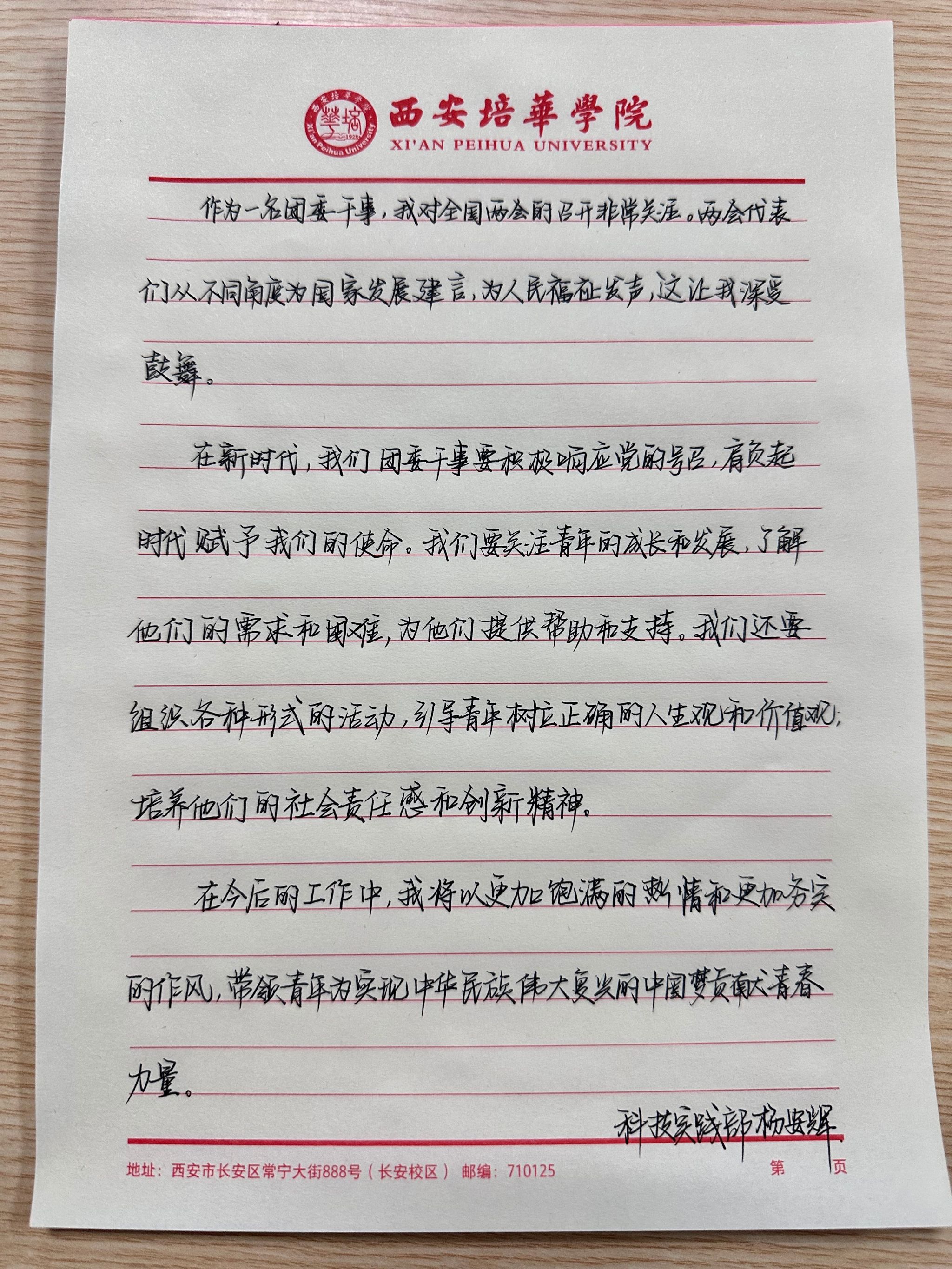 今年是新中国成立75周年,也是实现“十四五”规划的关键之年。全国两会如期召开,作为一名团学干部,我们要振奋精神、奋楫笃行,立志为中国式现代化作出青年贡献,踔厉奋发、勇毅前行,在奋斗奉献中彰显青年担当,书写壮丽青春篇章。以青春之名,书写清澈挚爱;以心中红星,献礼盛世中华。