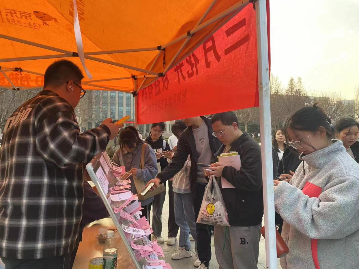 活动现场,同学们通过扫码答题参与活动,积极巩固自己的消费权益知识,同时在横幅上签名,表达对维护消费者权益的决心。活动过程中,同学们充满热情,踊跃参与答题环节,展现了对消费权益知识的丰富储备。