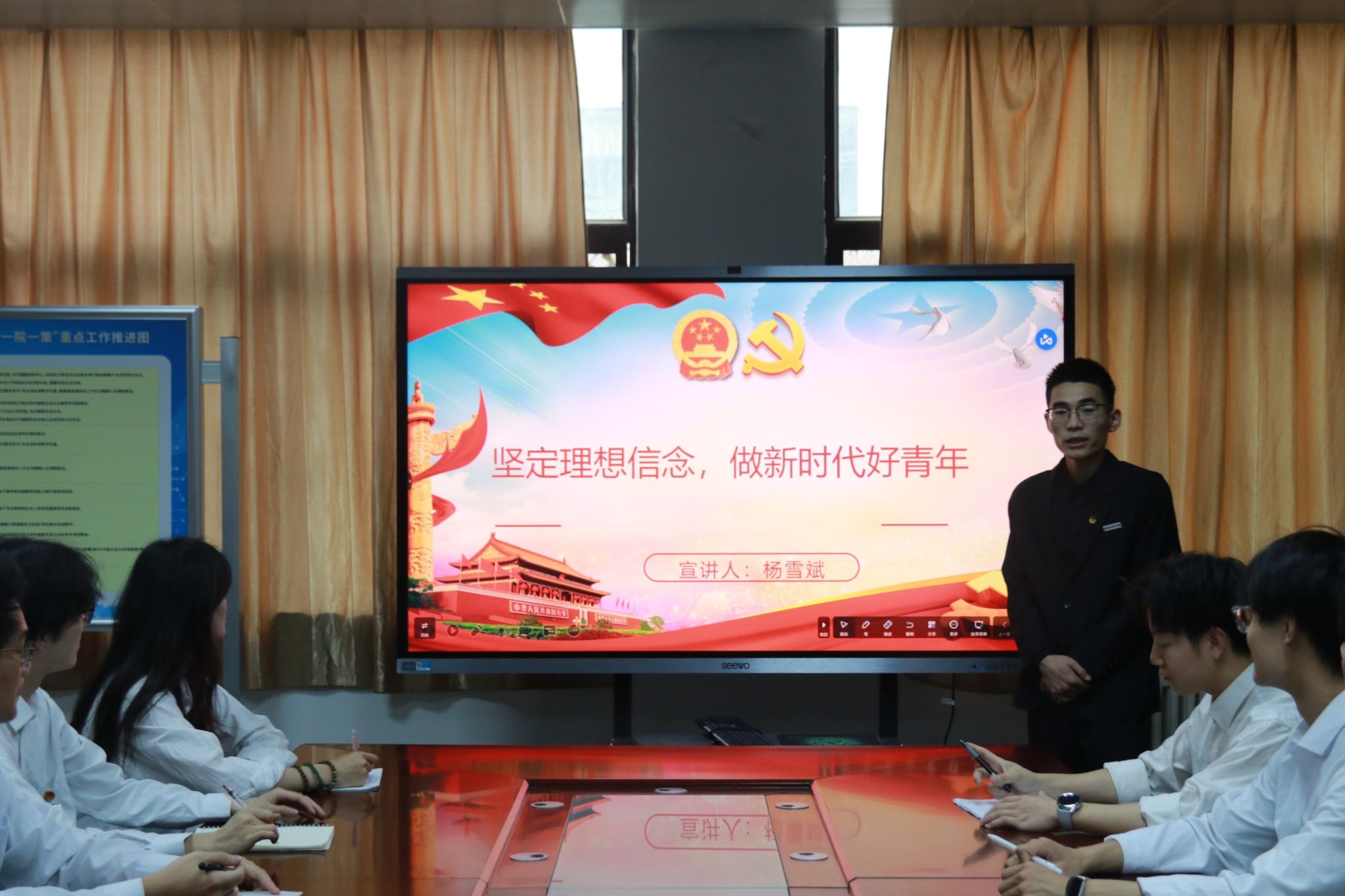本次团课由团委副书记杨雪斌讲授,以“坚定理想信念,做新时代好青年”为主题,围绕如何成为新时代好青年,如何坚定理想信念,以及坚定理想信念的意义等方面,向大家做了充分阐释。
