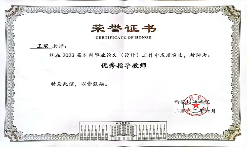 在教学实践中,她注重理论与项目实践相结合,严谨治学、精益求精,努力提升教学质量和课堂教学水平,使学生在每一堂课中都能获得知识和技能的提升。在进入西安培华学院的短短几年里荣获了2023年校级优秀教师、2023届优秀毕业论文指导教师、2022年优秀共产党员等荣誉称号。
