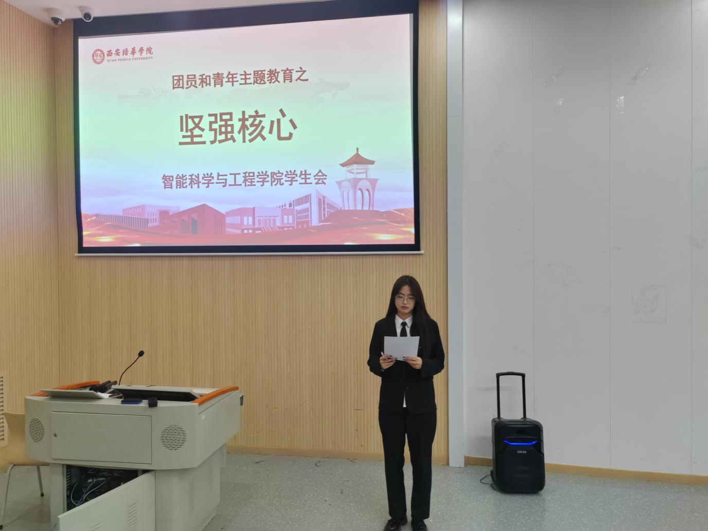 为深入学习宣传贯彻党的二十大精神,深刻领悟习近平新时代中国特色社会主义思想,青年大学习为配合开展团员和青年主题教育,按照“思想旗帜”“坚强核心”“强国复兴”“挺膺担当”4个主题开展团员和青年主题教育特辑。2024年3月21日,智能科学与工程学院学生会于3502教室召开了“坚强核心——团员和青年主题教育”活动。