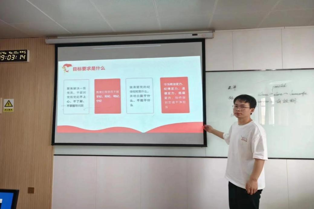 开展“党纪学习教育”。不仅限于党团干部,更是动员了班级每一位同学积极投身其中,共同深入学习党的纪律和规矩,以期增强党性修养。借此次学习教育活动为契机,使班级的党员干部深刻领会党的纪律精神,坚定不移地强化自身的纪律意识和党性意识,将这些理念内化于心、外化于行,转化为日常学习、工作和生活中的自觉行动。