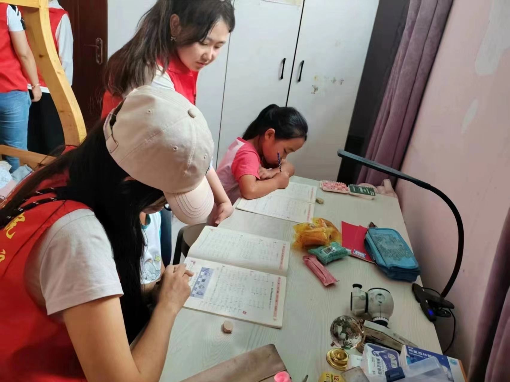 丈夫外出工作,留守妇女成为家庭的顶梁柱。队员们拜访了一位留守妇女家中,她不仅要照顾两位老人和三个孩子,还要操持家务、辅导孩子学习。在辅导孩子学习方面,让她本就不高的文化水平难上加难。生活的疲惫,让她在生活的重担下艰难前行,默默地付出,以柔弱的肩膀扛起家庭的责任。