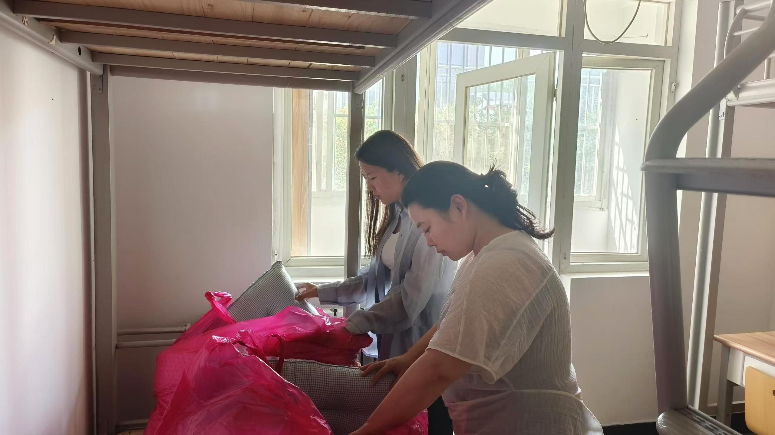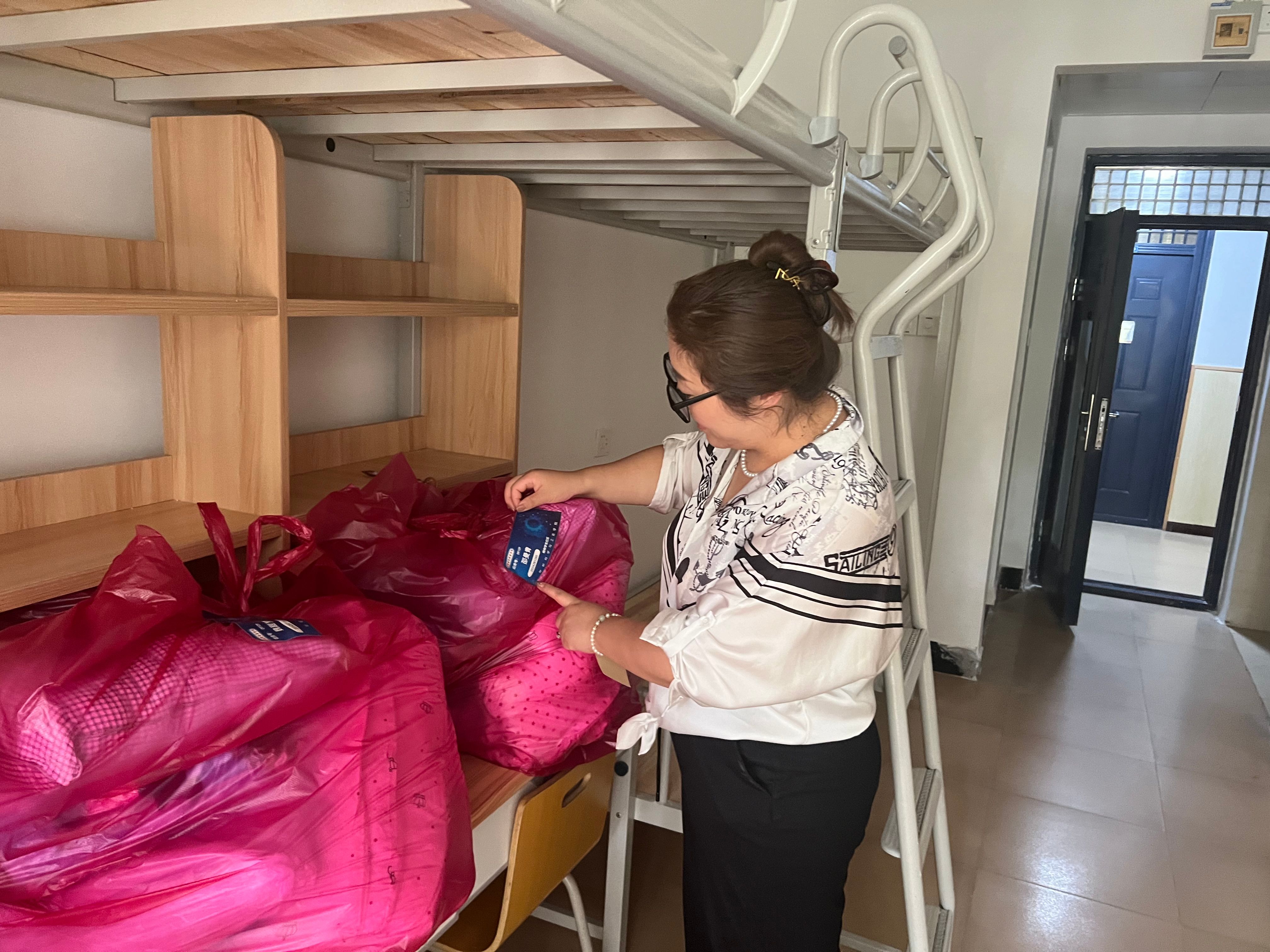 而转到新生宿舍,画风突变成了“细节控”大赛现场。每一位辅导员们一边认真地核对被褥数量,检查宿舍设施,确保每位新生都能拥有舒适的休息环境,一边为新生被褥贴心的贴上姓名贴,确保每位新生都能找到属于自己的温暖。他们还仔细检查宿舍的每一个角落,确保新生们能够在一个安全、舒适的环境中开始他们的大学生活。
