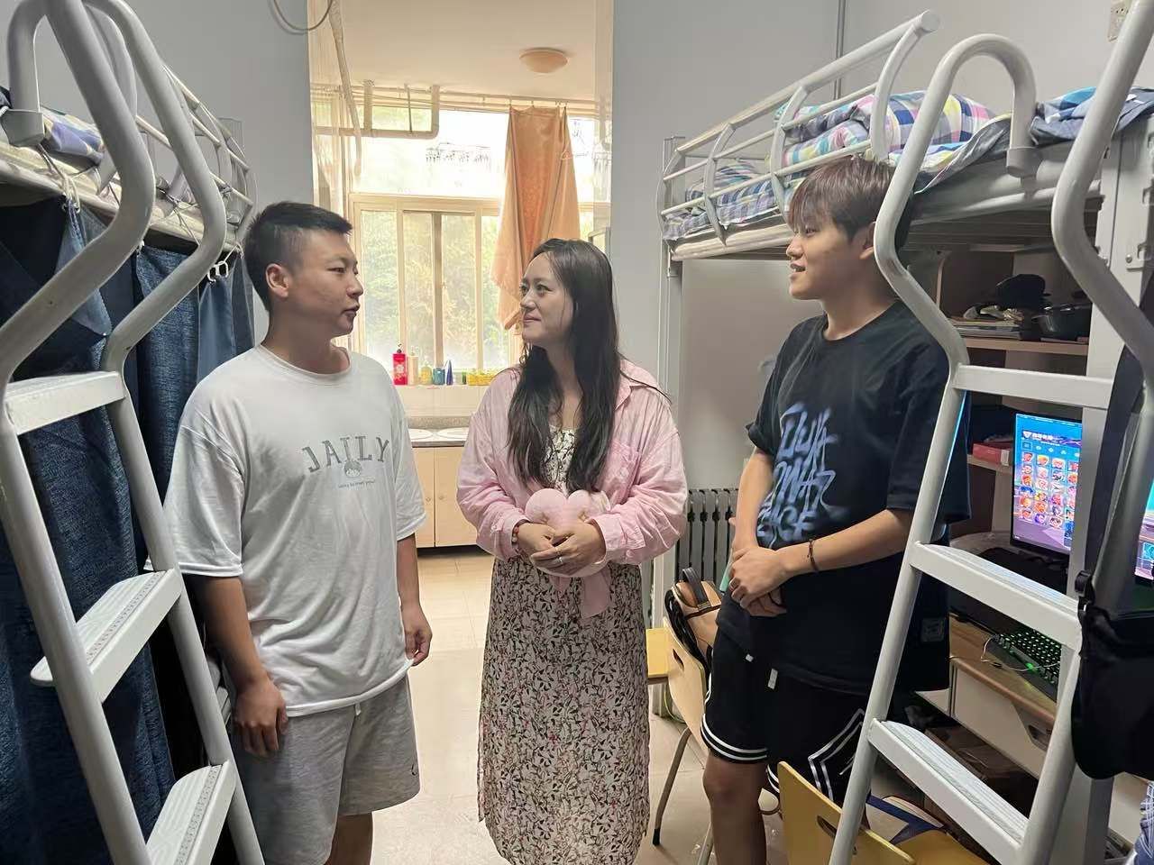 “老生公寓,我们来啦!”每位辅导员都像是拥有超能力的英雄,一进门就用那句“我来探班啦!?”的亲切开场白,瞬间拉近了心与心的距离。他们不仅化身成为学习生活的“探秘者”,仔细询问每位学子的返校适应情况,还变成了“心理小太阳”,用幽默风趣的话语驱散大家的小烦恼,为同学们带来温暖和力量。