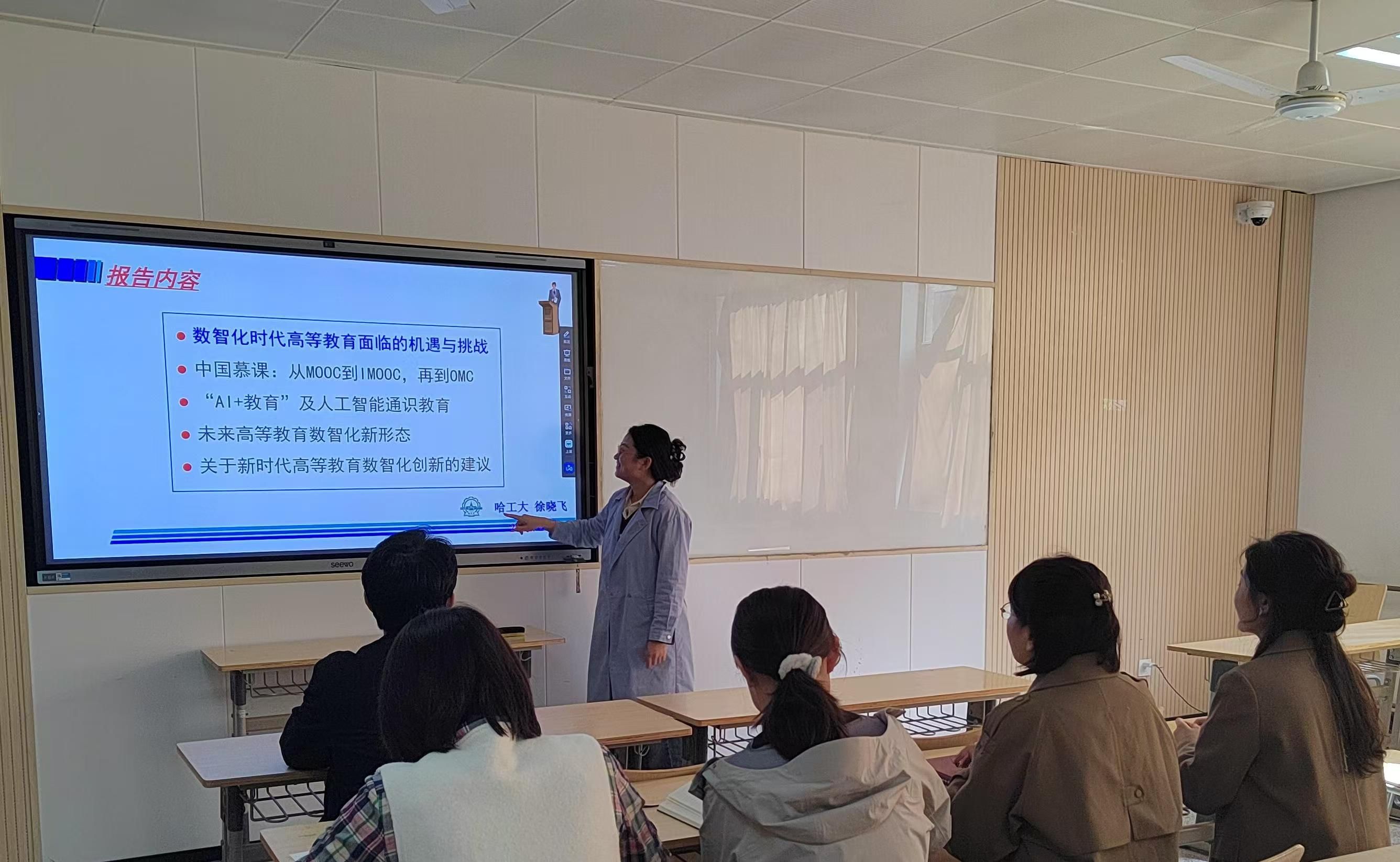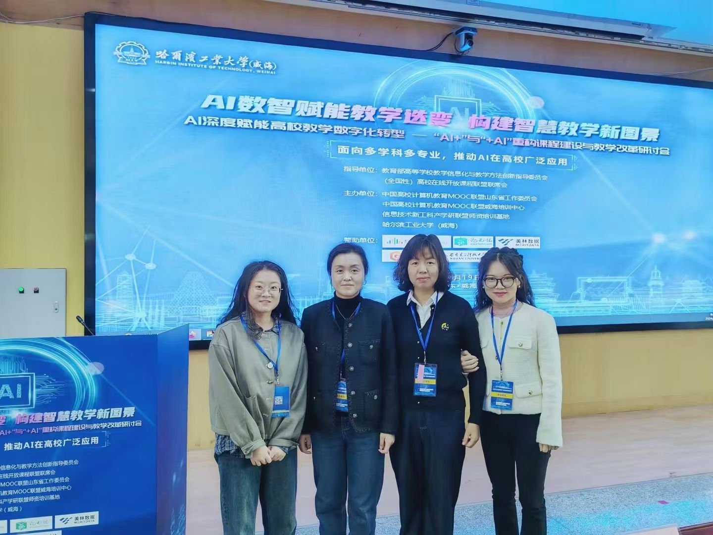 10月19-20日,由中国高校计算机教育MOOC联盟山东省工作委员会、威海培训中心和信息技术新工科产学研联盟师资培训基地共同主办、哈尔滨工业大学策划与组织的“AI深度赋能高校教学数字化转型——‘AI+’与‘+AI’重构课程建设与教学改革研讨会”成功召开,智能科学与工程学院选派骨干教师韦蕊、张燕、刘杰、卢奕冰几位老师参加。