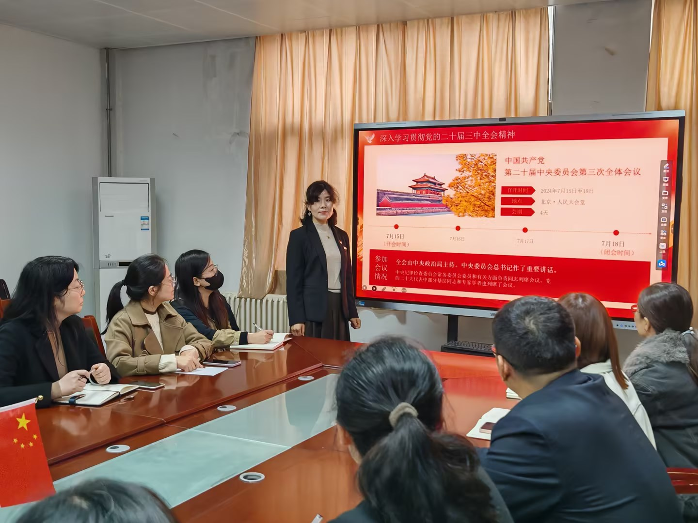 为深入学习贯彻党的二十届三中全会精神,进一步加强党员的思想建设和理论武装,凝聚思想共识,激发奋进力量,2024年11月11日,智能科学与工程学院教工第一支部开展了由支部书记毛莉君主讲的《深入学习贯彻党的二十届三中全会精神》专题党课学习活动。