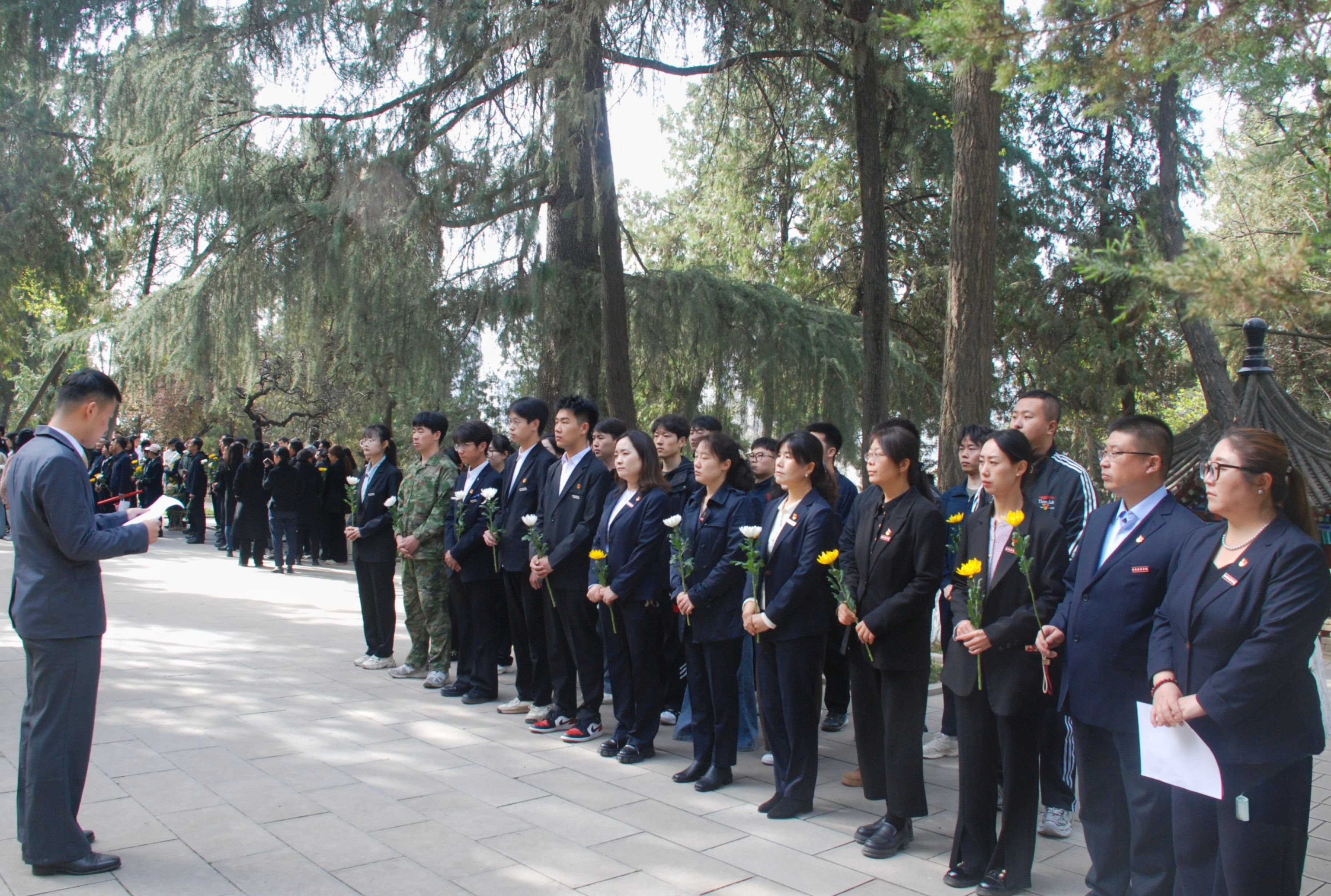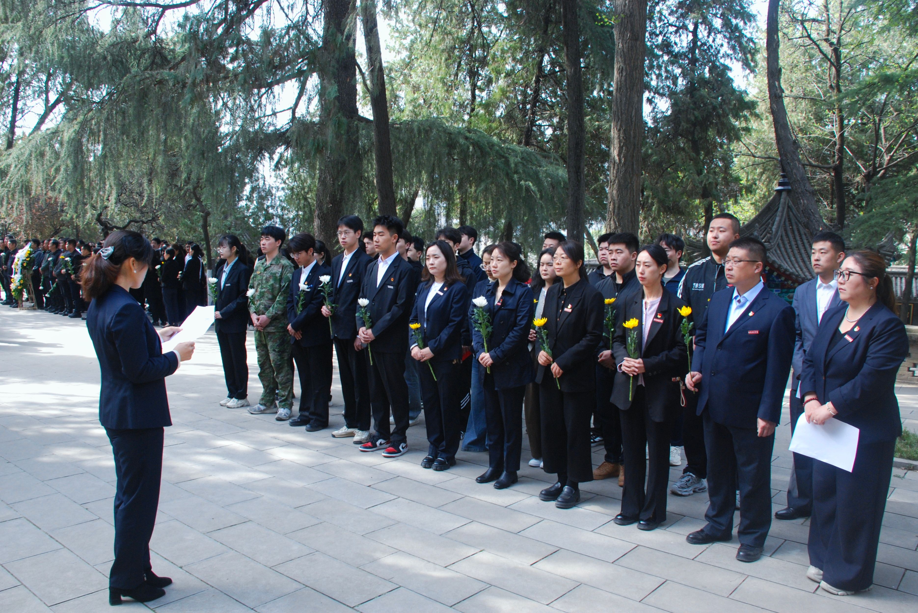 活动在庄严的国歌声中拉开序幕,全体人员肃穆而立,高唱国歌,深切缅怀为祖国和平献出生命的革命先烈,学院师生党员、退伍军人代表集体默哀,表达对革命先烈的崇高敬意与追思之情。