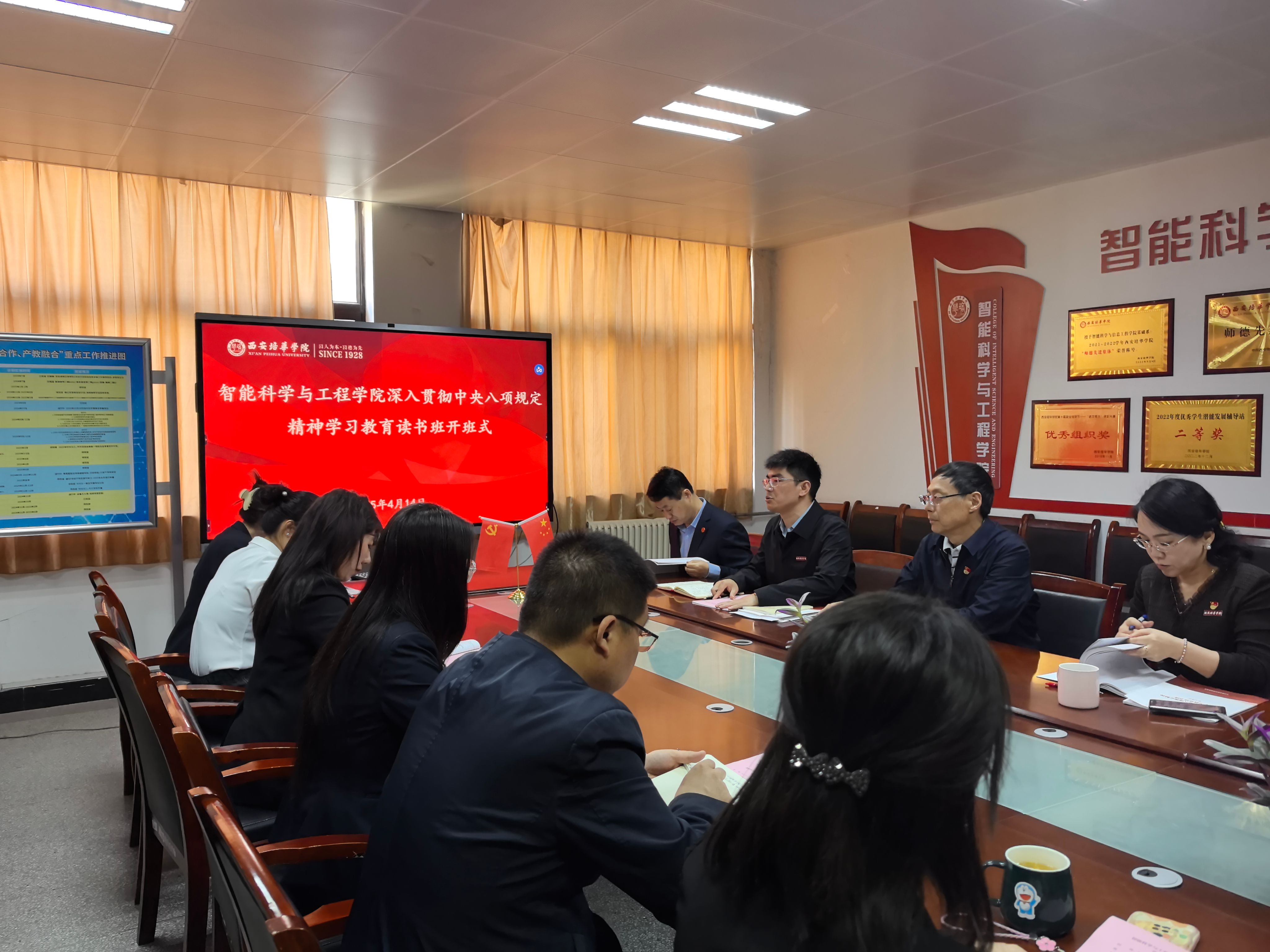 4月14日上午十点,智能科学与工程学院党委在育英楼党员活动室开展深入贯彻中央八项规定精神学习教育读书班暨党委理论学习中心组(扩大)第三次学习会议。会议由学院党委书记王林主持,学院党政领导班子、党委委员,各党支部书记、副书记参加。