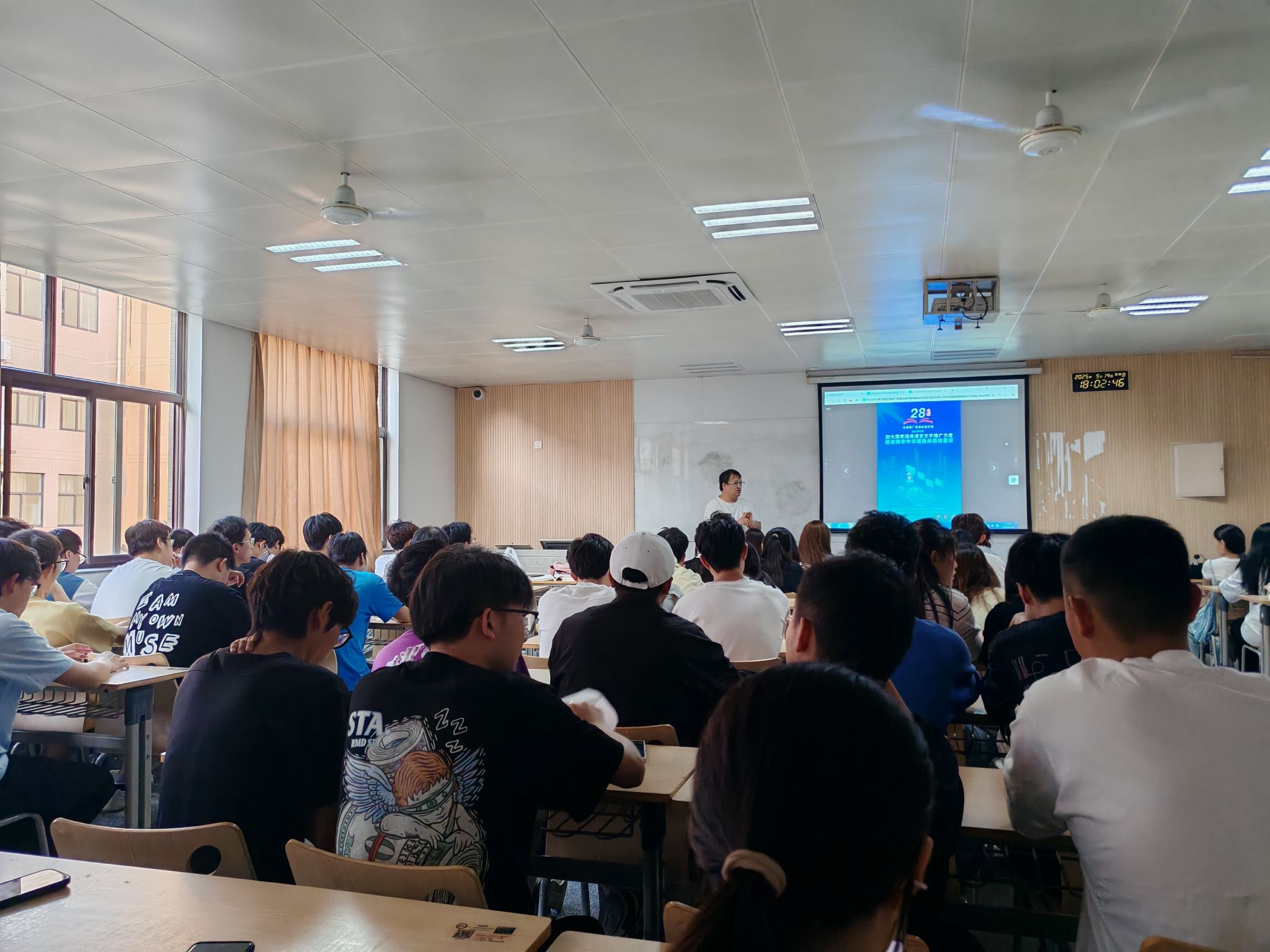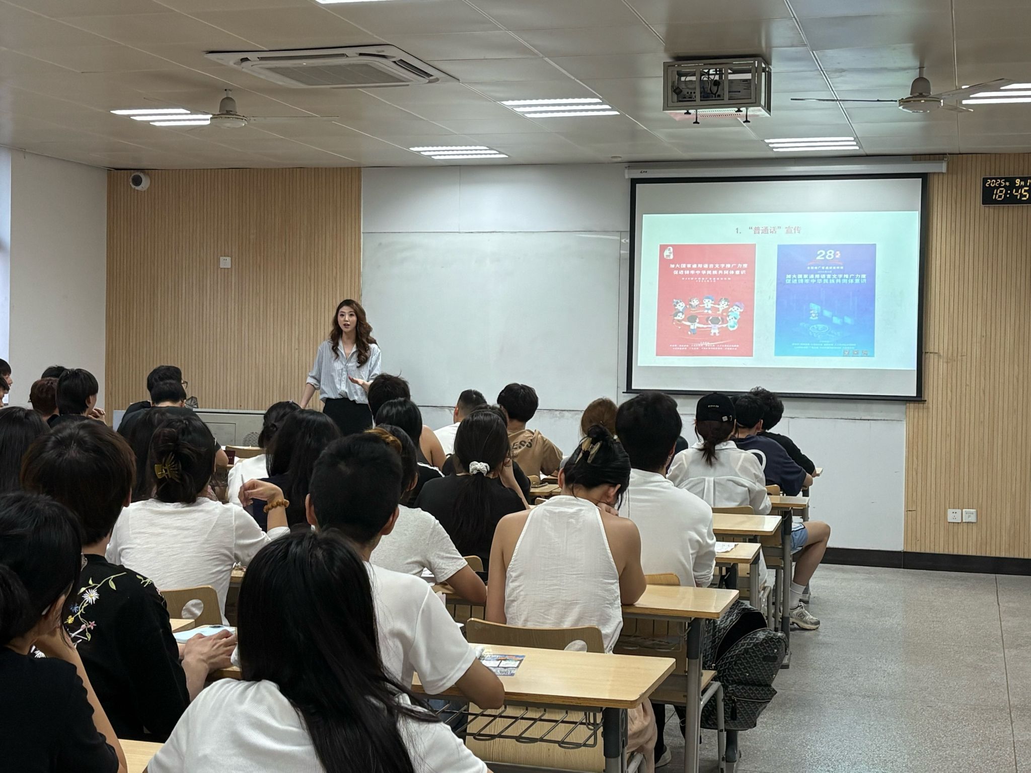 班会由各班辅导员主持,全体学生参与。活动中,师生们通过政策解读、实例分享与互动讨论等形式,深入学习了国家通用语言文字在促进民族交往交流交融、传承中华优秀文化、增强国家认同方面的重要作用。同学们结合学习生活实际,探讨了如何从自身做起,学好、用好普通话,做民族团结的积极践行者。