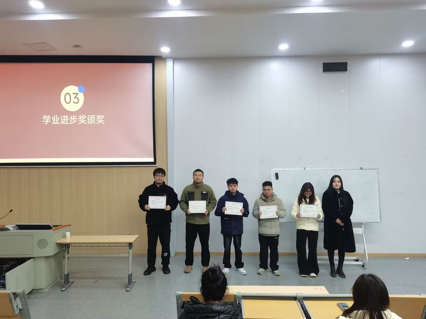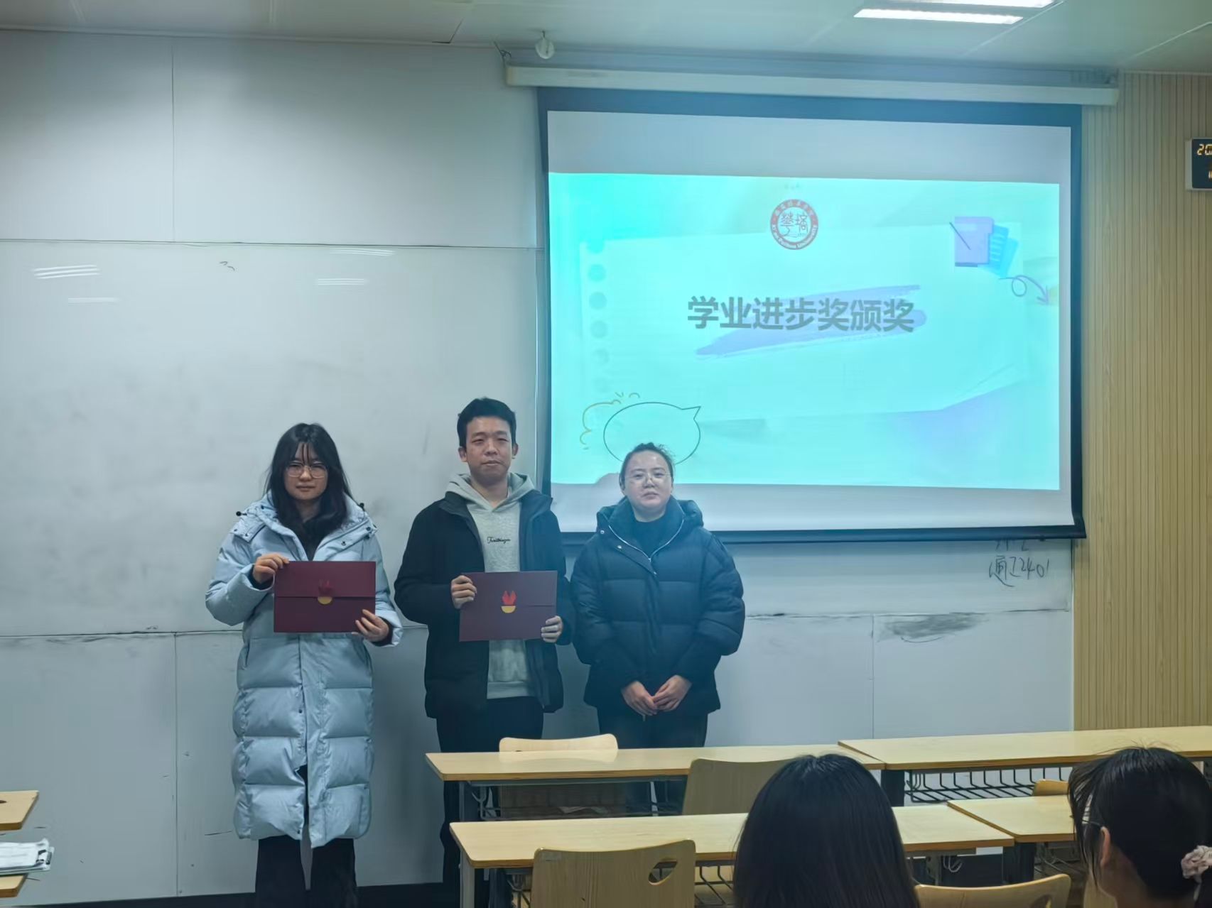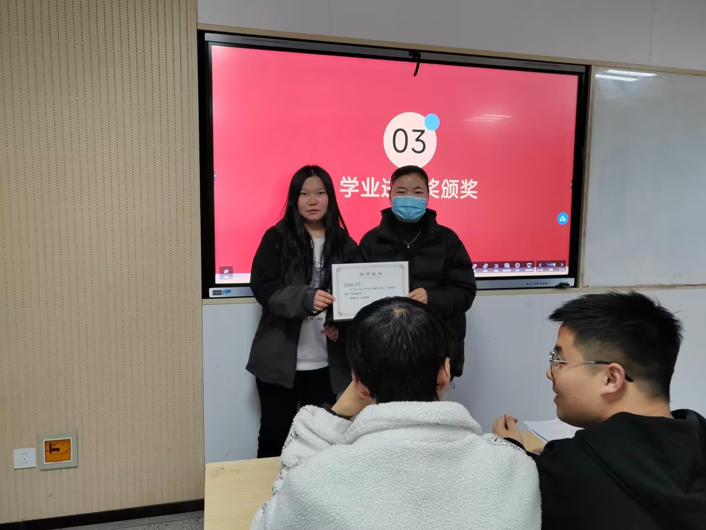 在温馨而庄重的班级氛围中,辅导员为每一位学业进步奖获得者颁发了荣誉证书。相较于全院大型表彰,班级内的颁奖更显亲切,同班同学们的掌声与祝福也让这份荣誉更具情感温度。一张张合影,记录下的不仅是个人的高光时刻,更是班级集体对进取精神的共同肯定与呵护。